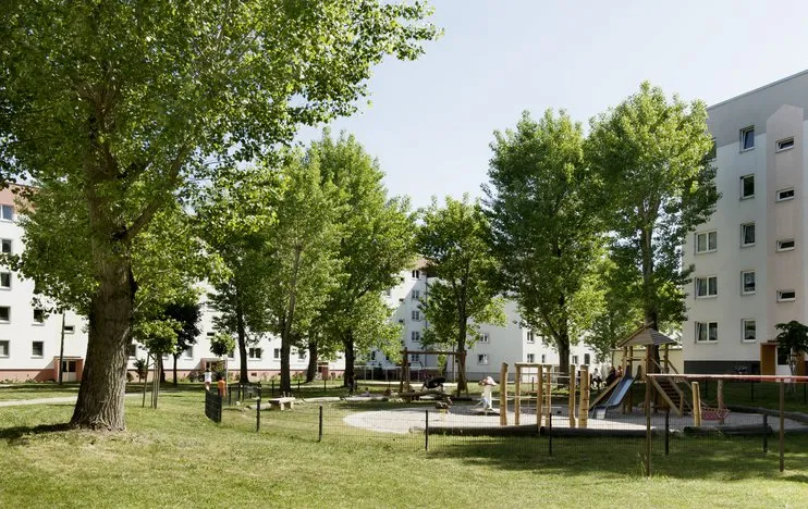 Der Gebäudekomplex mit 180 Wohnungen bietet ca. 11.000 Quadratmeter Wohnfläche, einen Spielplatz sowie Grünanlagen. Das Objekt befindet sich am Ortsausgang von Bad Düben in einer gut besiedelten Wohnlage. Gute Einkaufsmöglichkeiten sowie alle sozialen Einrichtungen sind fußläufig erreichbar.