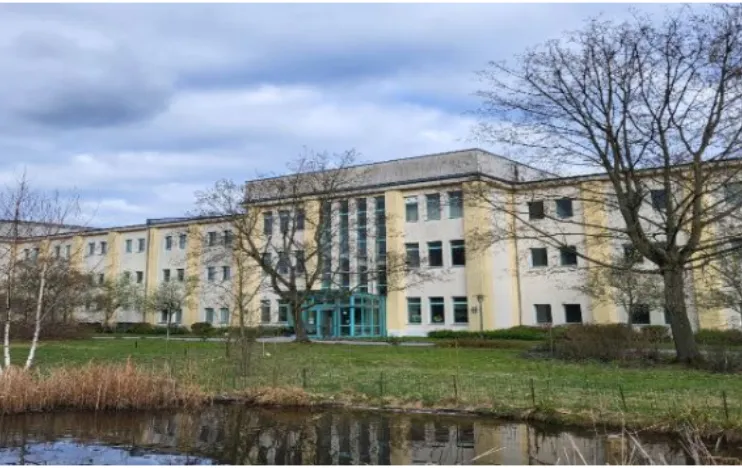 The property is located southeast of Berlin, on the western outskirts of the Adlershof science park. The spacious grounds feature four buildings with a maximum of two stories and a garage.